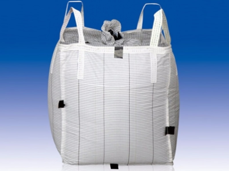 為了有效地去除在裝料和卸料時產生的靜電,防止燃燒和爆炸等危險情況發(fā)生,在生產過程中將導電絲編織在袋體布料和吊帶中,并結合導電膜的使用,通過導電絲的接地從而達到導電作用。